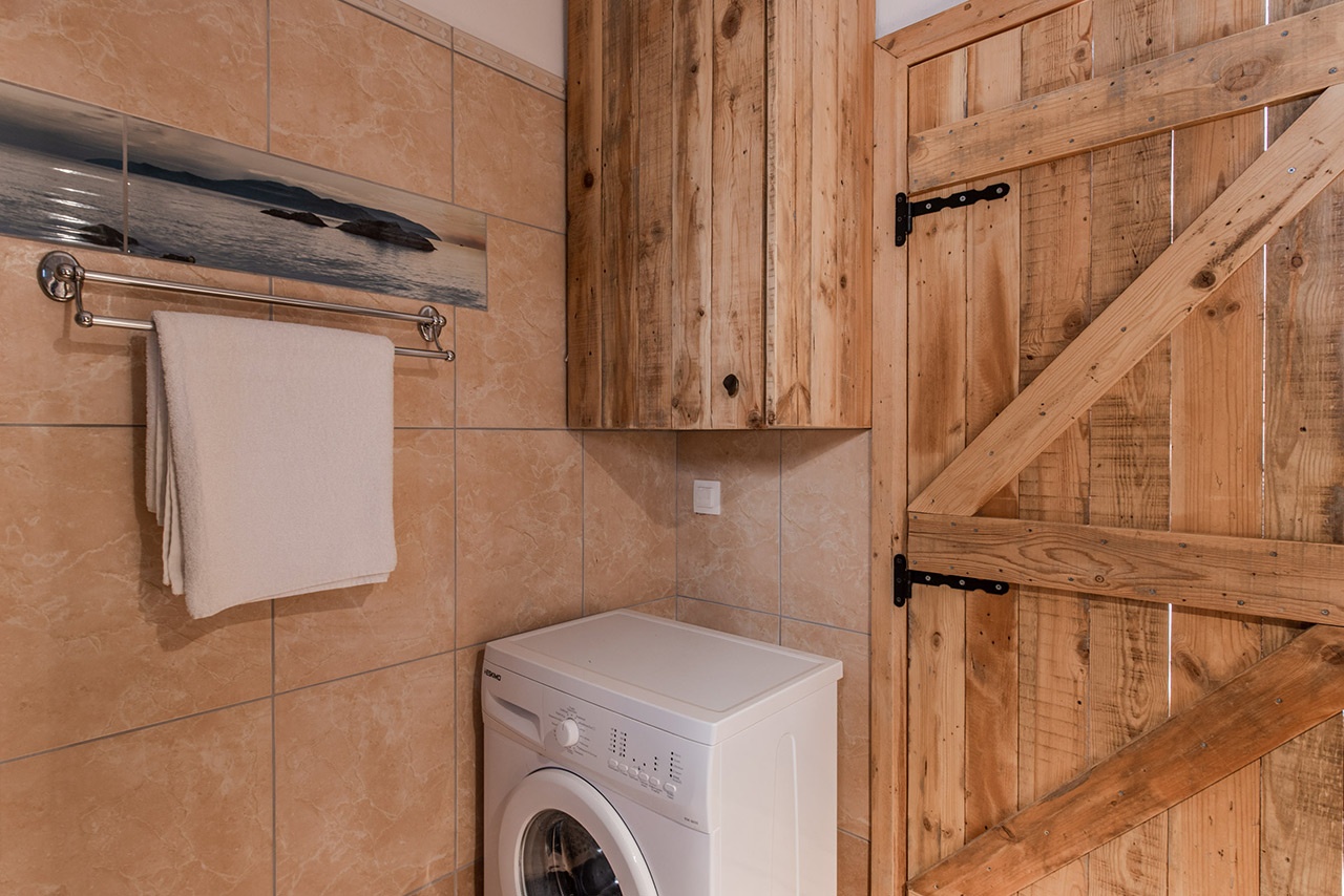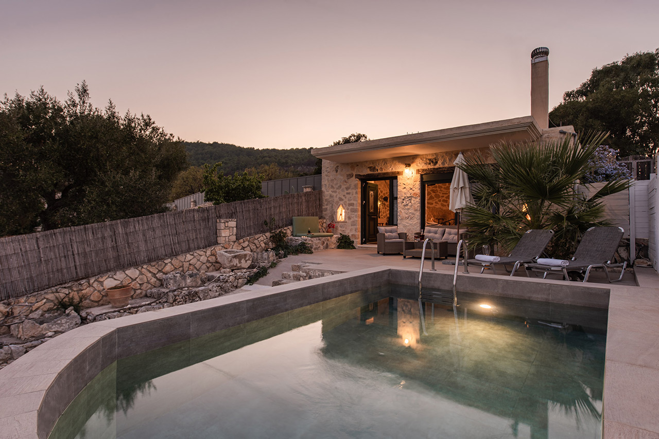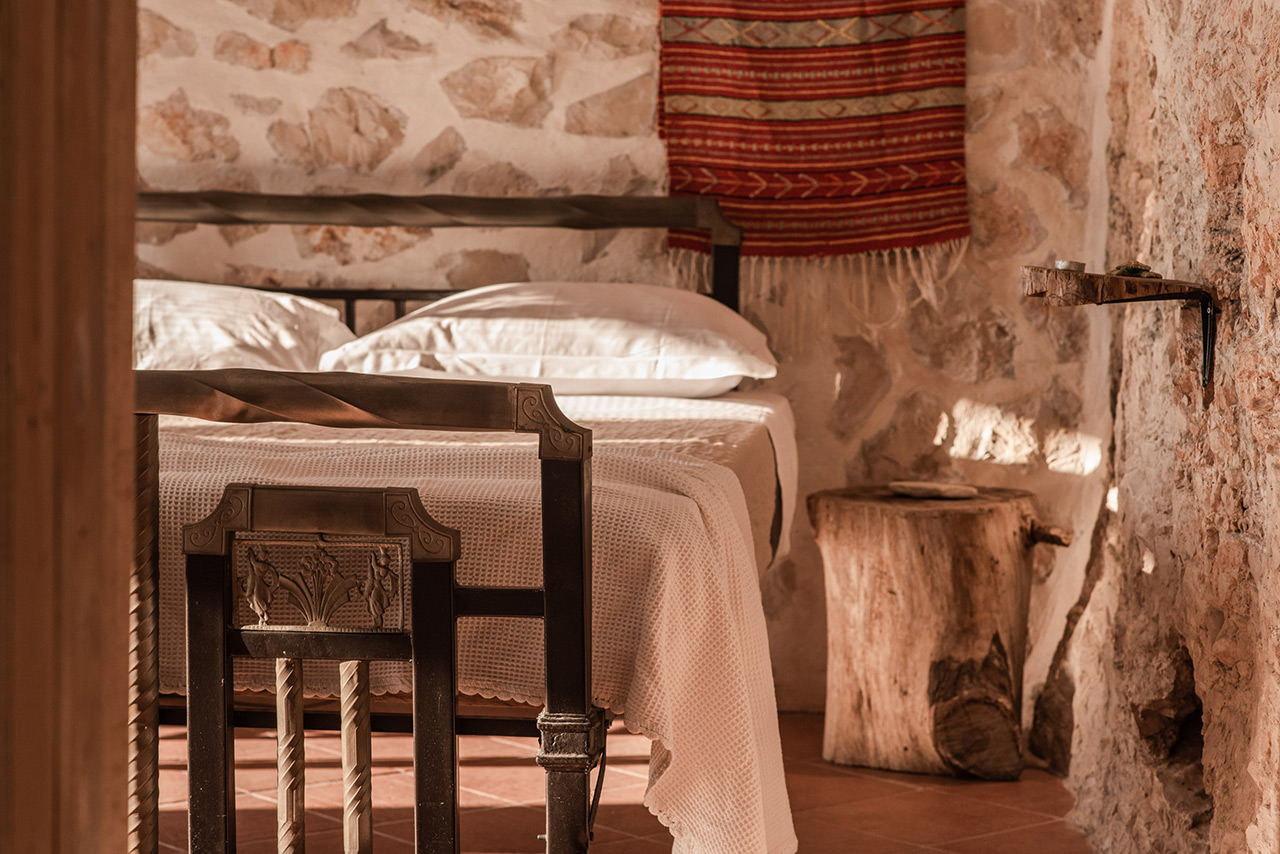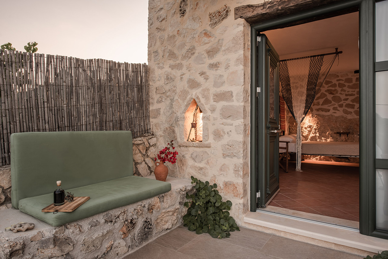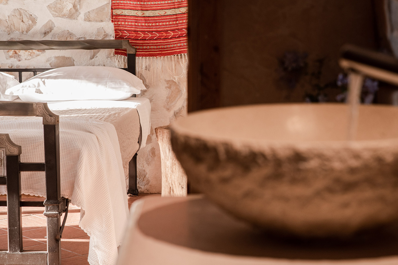 Το κατάλυμα είναι πέτρινο και μάλιστα χτισμένο πάνω σε ένα βράχο στη βάση του οποίου υπάρχει μια πραγματική μικρή σπηλιά, φροντισμένη και φωτισμένη με υπέροχους συνδιασμούς. Η κουζίνα είναι πλήρως εξοπλισμένη με φούρνο, ψυγείο, πλυντήριο πιάτων ενώ στο μπάνιο που είναι φτιαγμένο από πέτρα επίσης θα βρείτε ντουζ με στήλη υδρομασάζ και βέβαια πλυντήριο ρούχων και πιστολάκι μαλλιών.